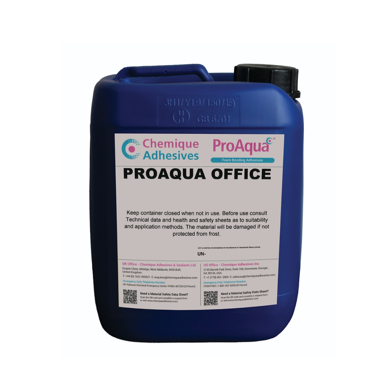ProAqua Office is the adhesive component of a two-component water-based sprayable adhesive that exhibits the softest of bond lines and is strong enough to bond to plastics. Used in conjunction with ProAqua Activator 24 it offers a high initial tack that will rival the traditional contact adhesives.
